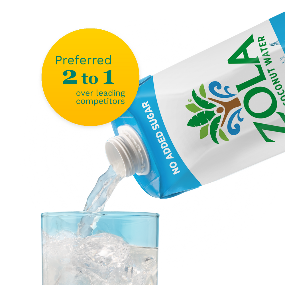 In a head-to-head blind taste test, Zola beats leading coconut water competitors on taste – 2 to 1!* With just the right amount of sweetness and coconut flavor, Zola delivers lightly refreshing hydration that can’t be beat.